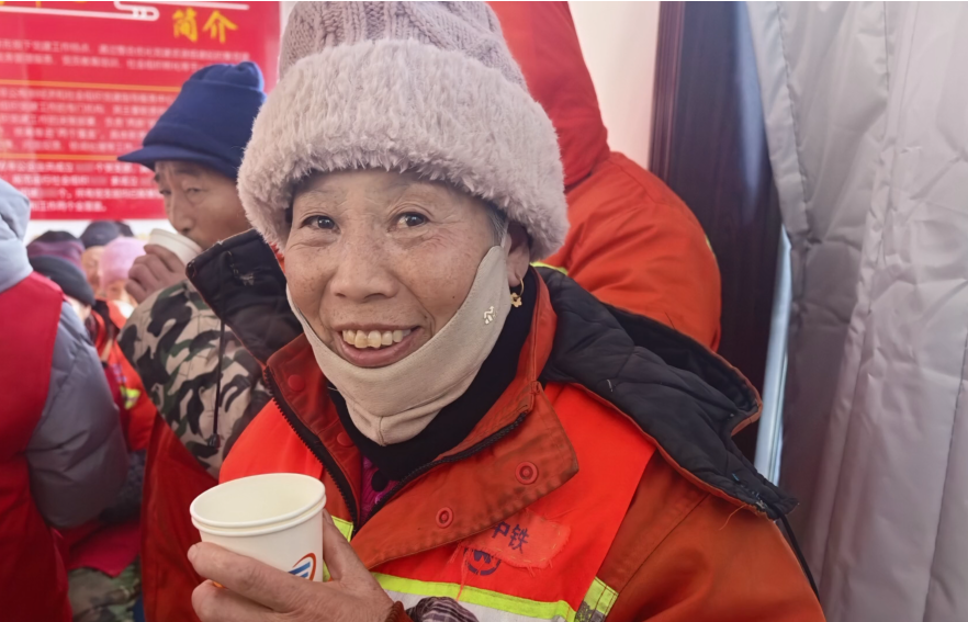 活动现场,身着红马甲的“返家乡”大学生志愿者们成为一道亮眼的风景线。他们分工明确、协作默契,切梨、洗枣、熬煮、盛粥、派送,每个环节都有条不紊、细致入微,将对户外工作者的敬意与心意融入每一道工序。志愿者们小心翼翼地将热气腾腾的银耳羹装入保温桶,逐一递到户外工作者手中,一句句 “腊八节快乐”、“您辛苦了”的诚挚问候,搭配着暖入心扉的热羹,不仅驱散了冬日的凛冽寒意,更让户外工作者们真切感受到了来自社会各界的尊重与关怀,脸上洋溢着温暖的笑容。